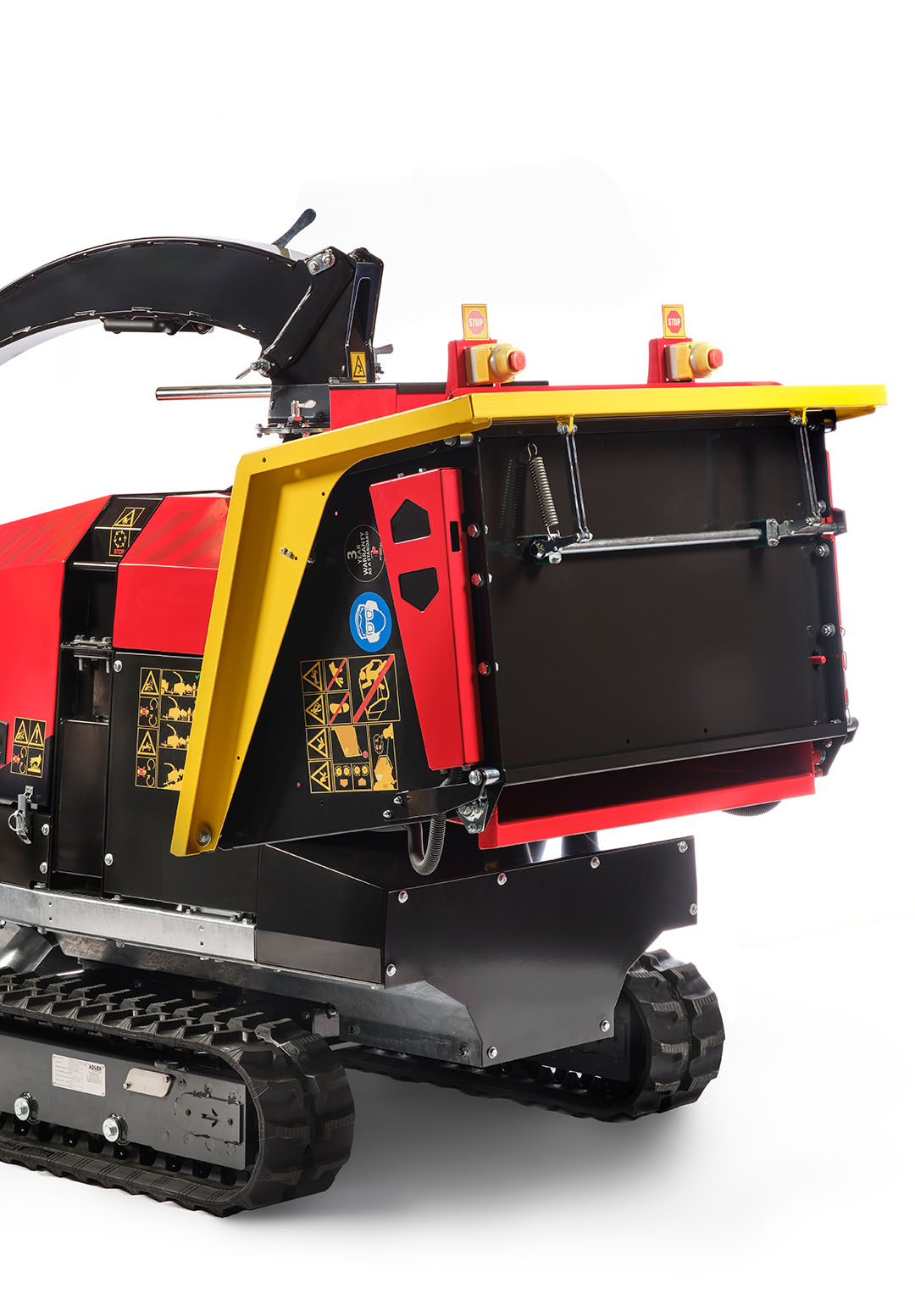 - Manuelt styrepult – via styrepult kontrolleres flishuggeren, mens brugeren er stående på sikkerhedsaktiveret platform.