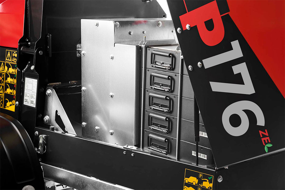 - Stærk elektrisk flishugger – 5 batterier med 20 kWh