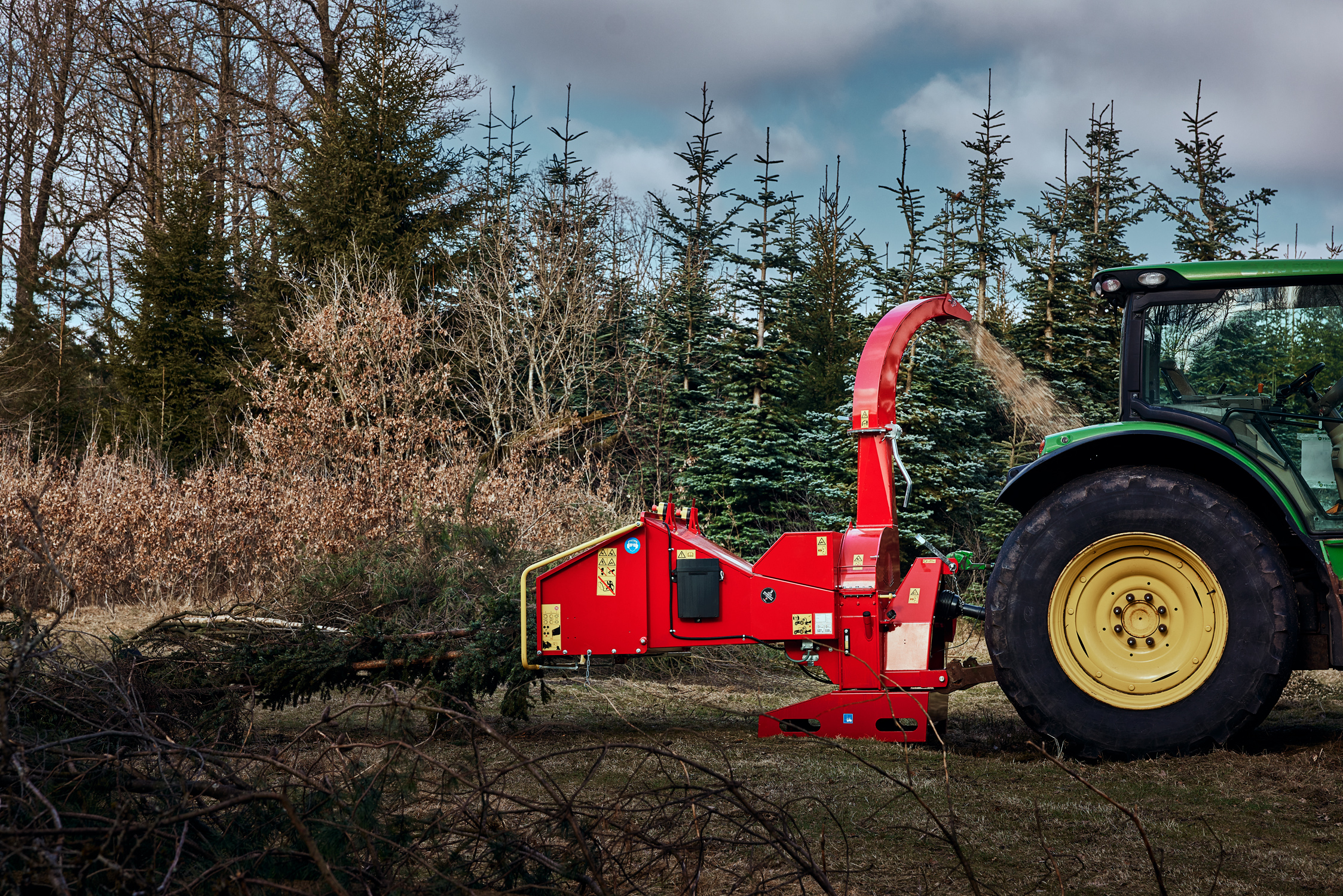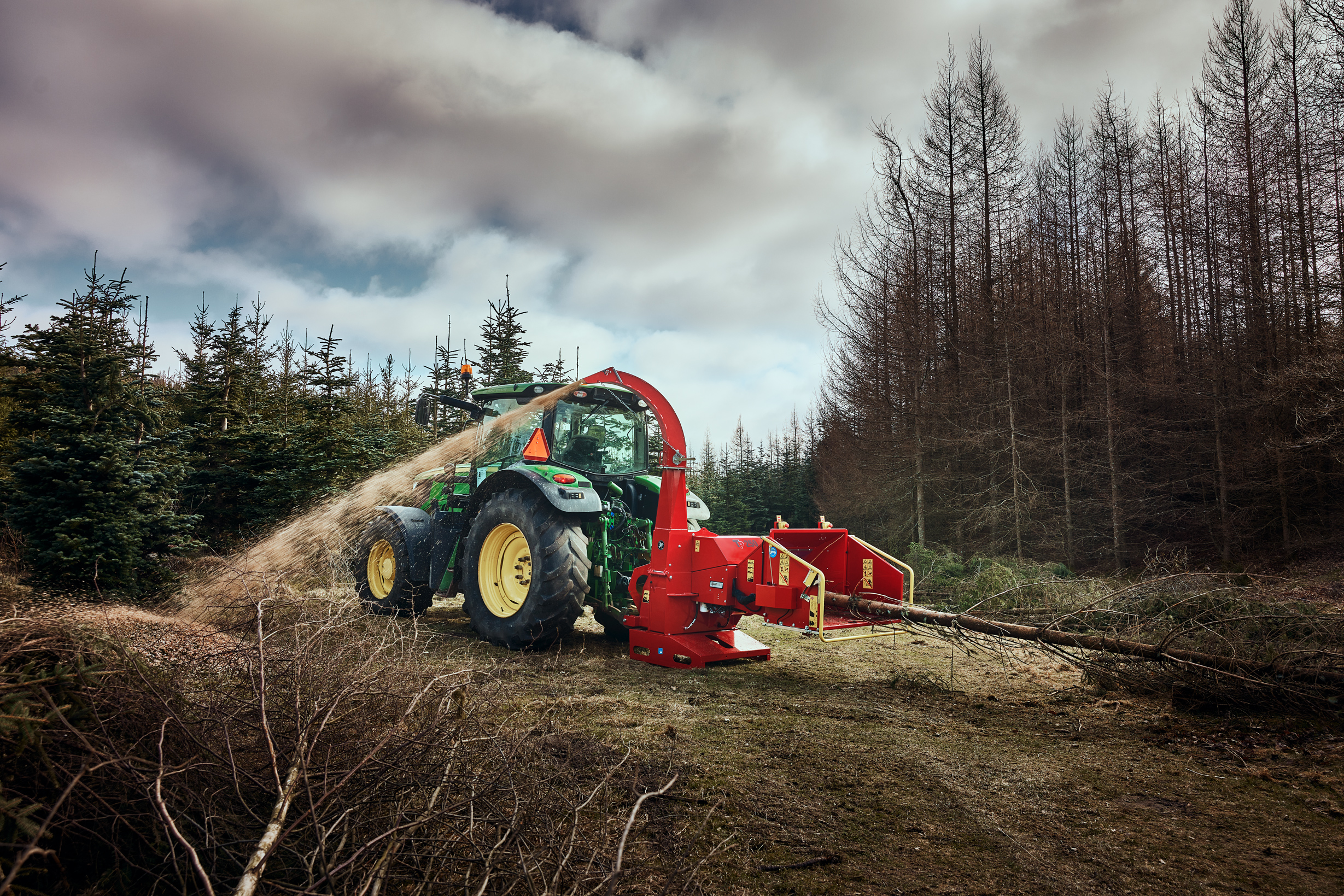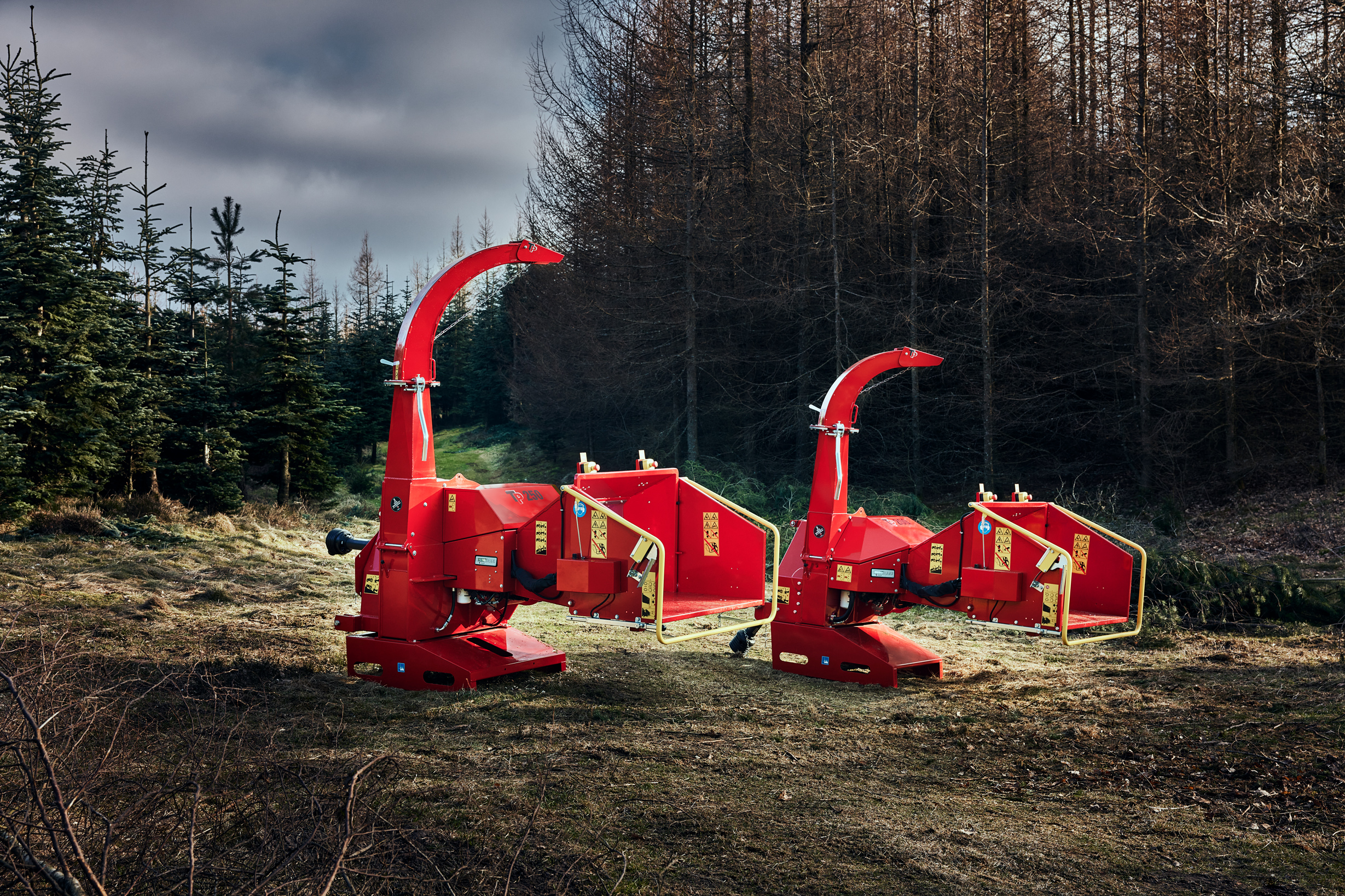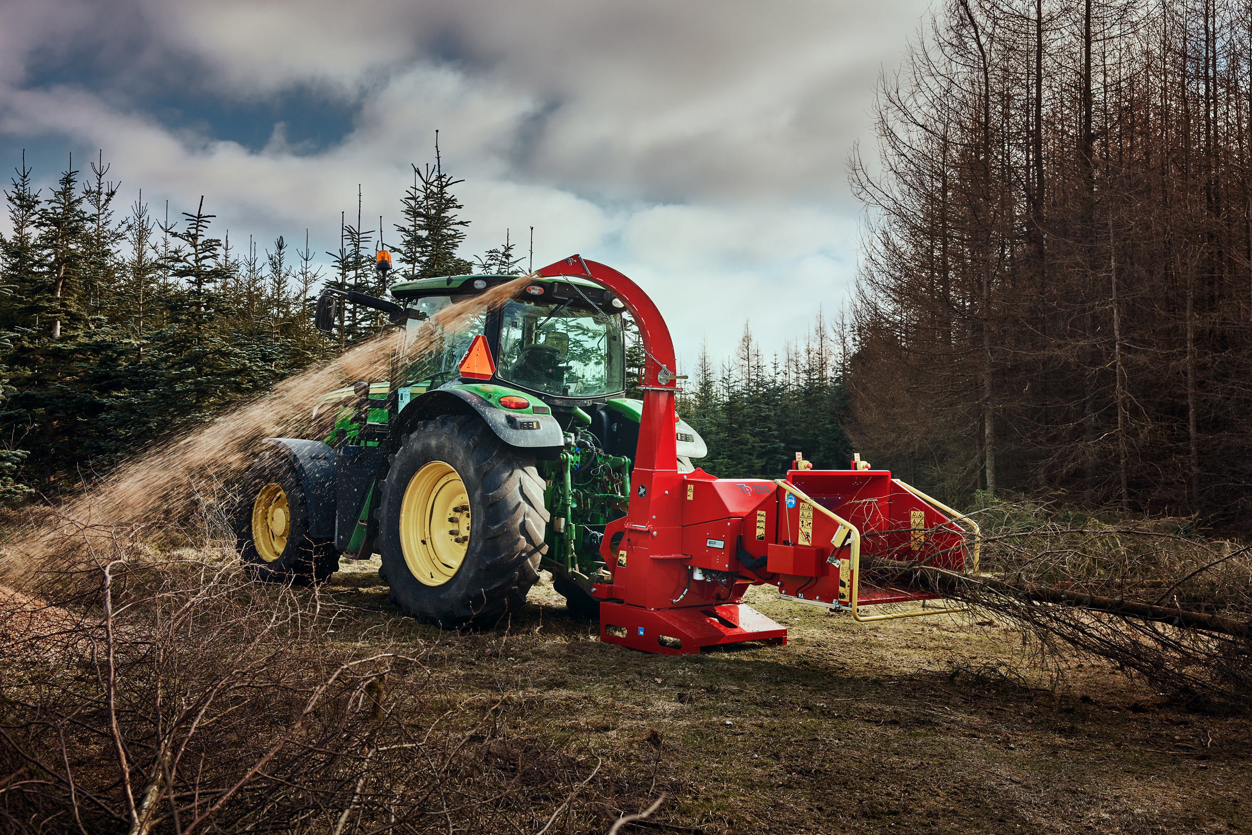 - TP 250 PTO er en skivehugger med hydraulisk indtræk, der er effektiv til oprydning og flishugning af grene op til 250 mm i diameter