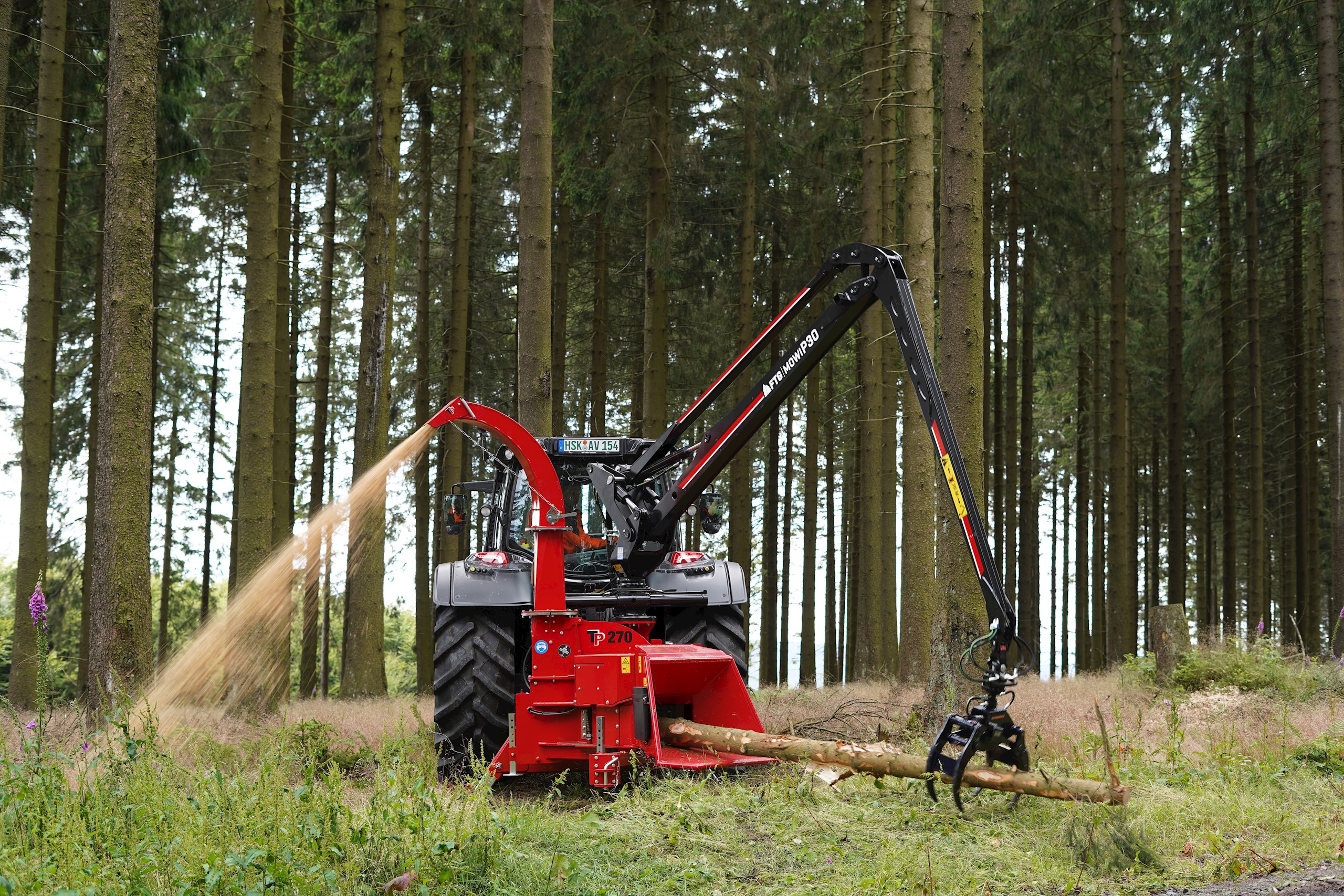 - En kraftfuld flishugger med hydrauliske indtræksvalser og en huggevinkel på 45°, der sikrer stor kapacitet og et aggressivt indtræk, selv af hele træer